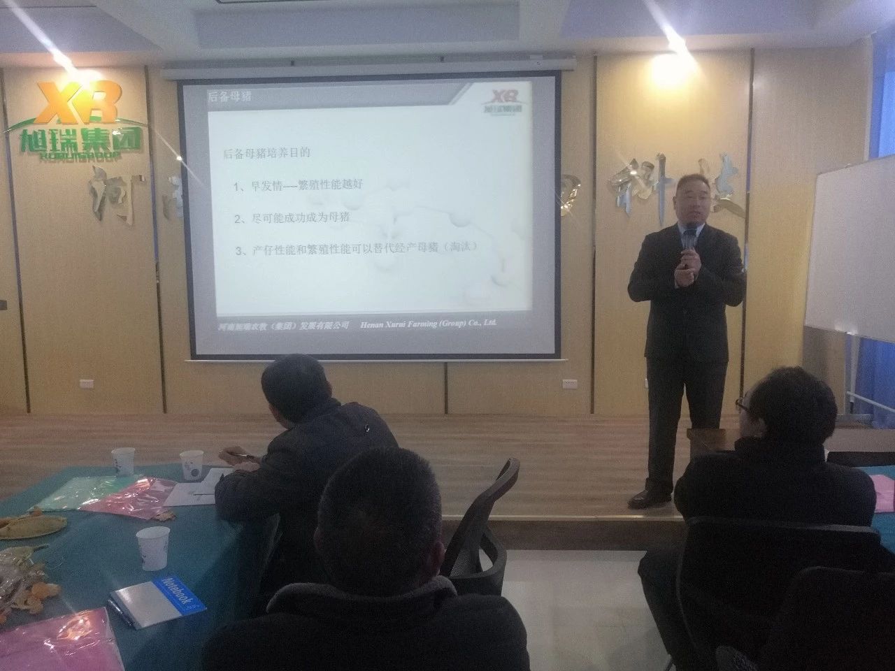 飼料板塊市場推廣總設計師趙桂松博士深入講解了目前的養殖技術現狀,受環保、疫情尤其是當前的非洲豬瘟影響,家庭農場迷失了方向,我們如何應對,更多還是做好自己,養豬回歸養豬本身。更要關注日增重、料肉比、及率(均勻度),100斤體重之前的豬如何經營才能更出效益,結合旭百瑞核心競爭力產品,制定兩套方案,保證經營商更具競爭力,家庭農場更健康有效的發展。 在其它飼料公司銷量頻頻下滑的現狀下,旭百瑞卻一直逆勢而上,更加說明了旭百瑞產品質量過硬,走在飼料行業前沿,未來公司的”128及208模式“和“三健克母豬濃縮料”產品方案會更滿足當前客戶的需求。